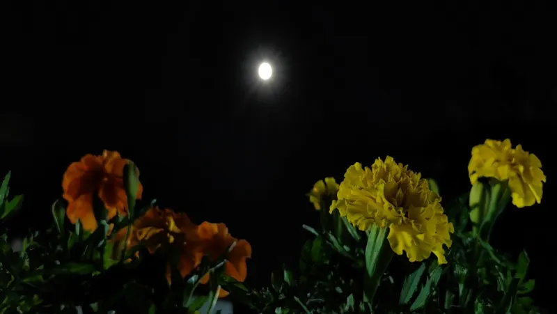 夜晚鲜花萦绕